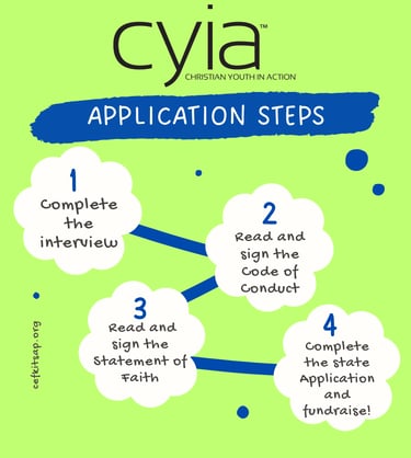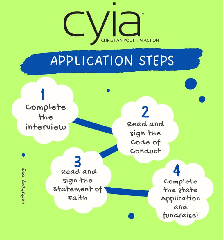 We have an application process that you can read below. CYIA is a teen leadership camp teaches you how to share the Gospel and how to teach children. At CYIA you will meet new friends and learn new things. You will be equipped, encouraged, and challenged in ways that you may have never experienced before. We have a lot of fun, but we also work really hard.